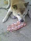 肉屋のオヤジのサービスか、今日の骨には少し肉が多くついてます。